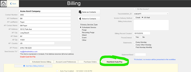 To set up Auto-Pay, start in the Billing Details. Click the tab named “Heartland Auto-Pay”.